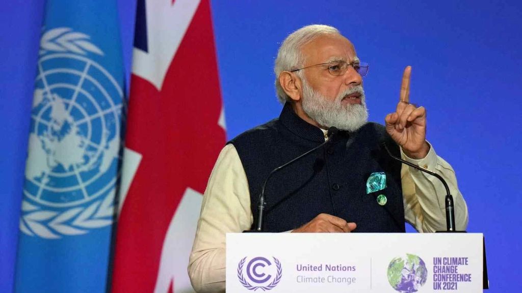 نارندرا مودی، نخست وزیر هند، در سخنرانی خود در اجلاس آب و هوایی گلاسگو وعده داد کشورش تا سال ۲۰۷۰ میزان انتشار کربن خود را به صفر برساند. او همچنین با اشاره به سهم ۳۸ درصدی انرژیهای تجدیدپذیر از سبد انرژی فعلی هند، قول داد این رقم تا سال ۲۰۵۰ به ۵۰ درصد برسد