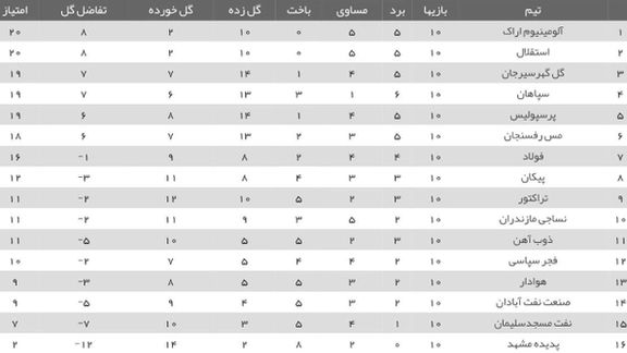 جدول رده بندی لیگ برتر فوتبال را با پایان هفته دهم لیگ برتر مشاهده میکنید: