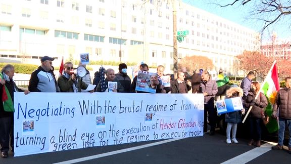 در اعتراض به اعدام حیدر قربانی، زندانی سیاسی کرد، از سوی جمهوری اسلامی ایران، جمعی از کردهای مقیم واشینگتن دیسی روز پنجشنبه مقابل وزارت خارجه آمریکا تجمع کردند.