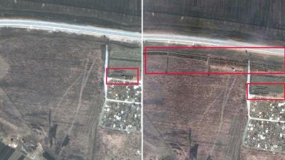 تصاویر ماهوارهای شرکت فناوری اطلاعات مکسار نشان میدهد یک گور دستهجمعی در روستای مانهوش در نزدیکی ماریوپل اوکراین حاوی بیش از ۲۰۰ قبر جدید است.