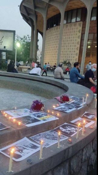 شماری از مردم تهران در مقابل تئاتر شهر برای قربانیان متروپل مراسم یادبود برگزار کردند