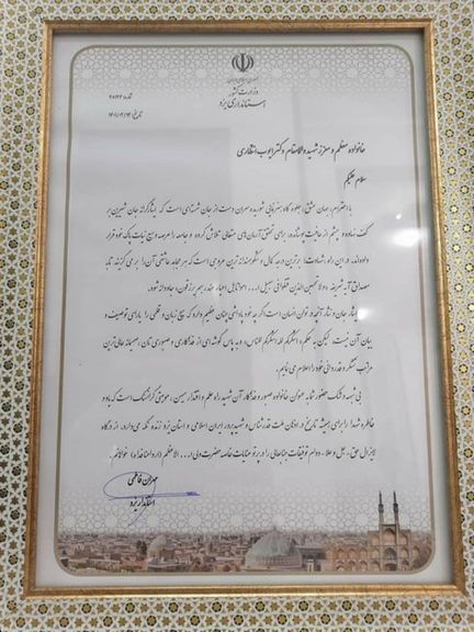 در یک پیام مکتوب از طرف استانداری یزد خطاب به خانواده انتظاری که به امضای استاندار هم رسیده از عبارت «شهید» برای ایوب انتظاری استفاده شده است. تصویری هم از حضور مقامهای محلی در خانه این متخصص پهپادی و موشکی منتشر شده است.
