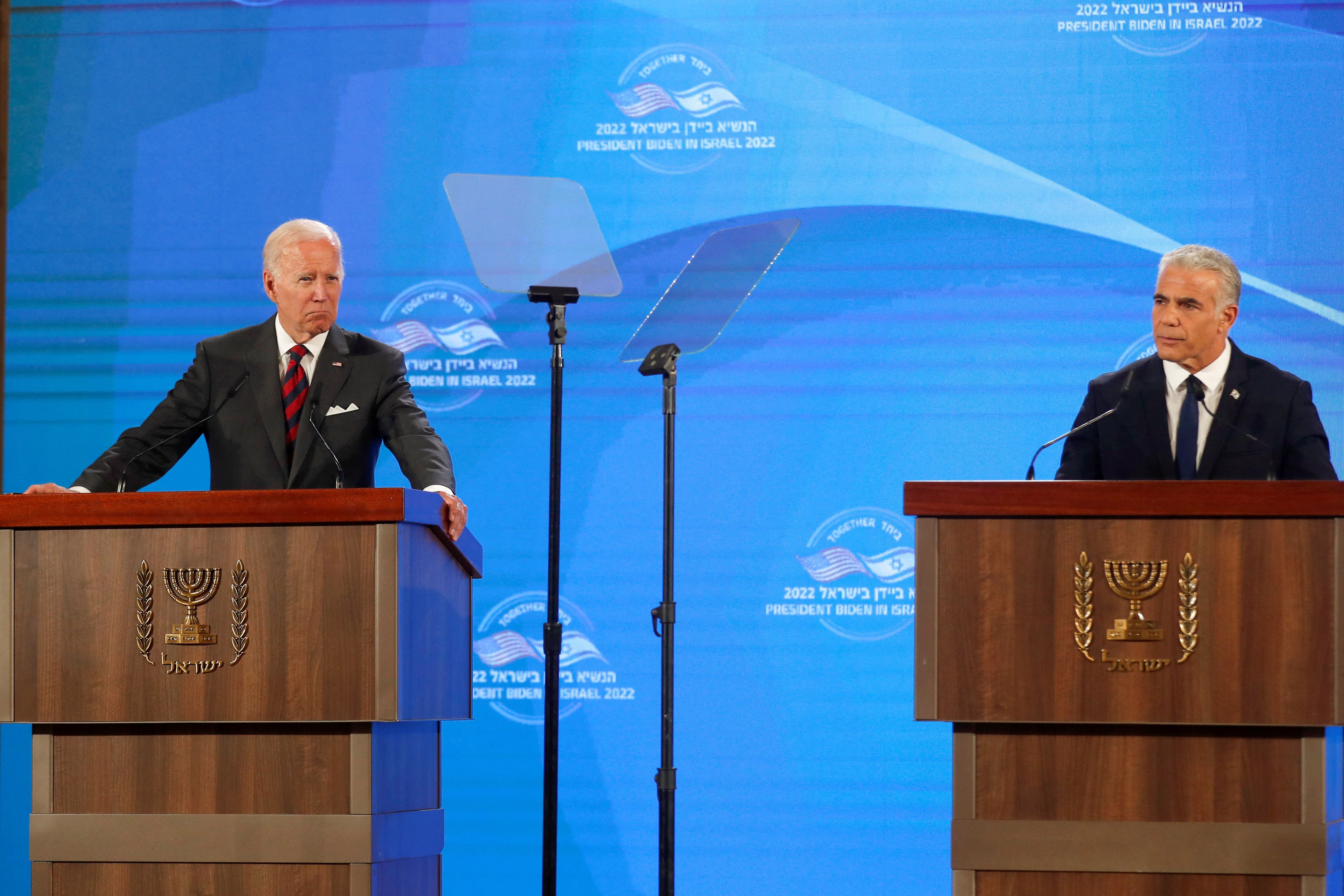 بایدن در نشست خبری مشترک با لاپید پس از امضای بیانیه مشترک، تأکید کرد که دیپلماسی بهترین راه برای جلوگیری از دستیابی به سلاح اتمی از سوی ایران است اما واشینگتن تا ابد منتظر پاسخ جمهوری اسلامی در مورد مذاکرات احیای برجام نخواهد ماند.