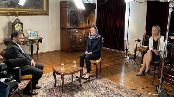 مصاحبه وزیر ارتباطات در روسیه؛ زن باحجاب در مقابل دوربین زن بیحجاب پشت دوربین