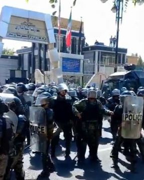 این گزارشها حاکی از شلیک گاز اشکآور به سمت معترضان و شلیک گلولههای ساچمهای است.
