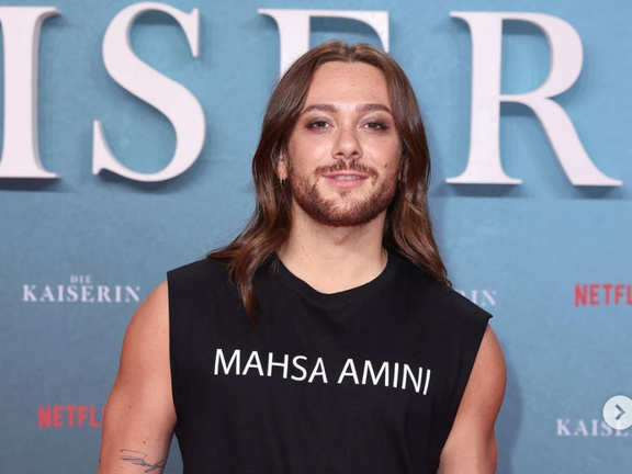 ریکاردو سیمونتی بازیگر، نویسنده و مدل آلمانی، در حمایت از مهسا امینی و زنان ایرانی در مراسم اکران یکی از فیلمهای نتفلیکس «دی کایزقین» (ملکه) لباسی با نام مهسا امینی پوشید