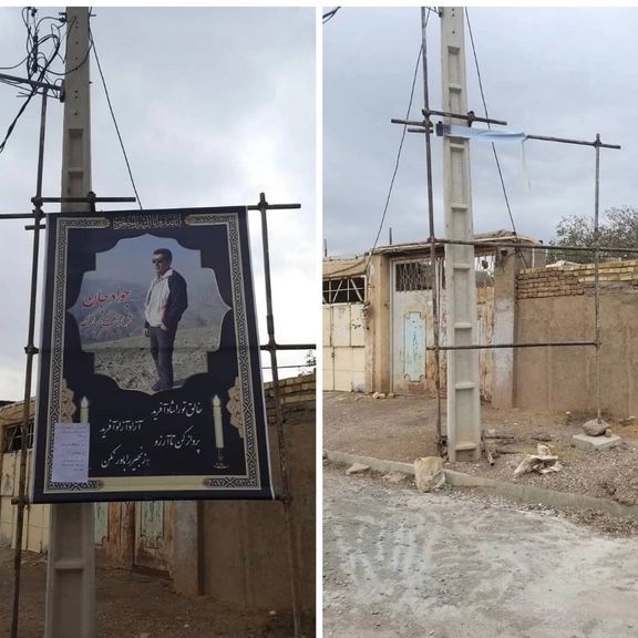 تصاویر رسیده نشان میدهد ماموران امنیتی بنرهایی که برای سوگواری جواد حیدری، از کشتهشدگان سرکوب اعتراضات، در نزدیکی خانه پدرش نصب شده بود را بار دیگر و شبانه پایین کشیدهاند. بنرها مجددا صبح نصب و روی آن نوشته شده: «اگر کارتان درست است، چرا شبانه و مخفیانه می آیید؟»