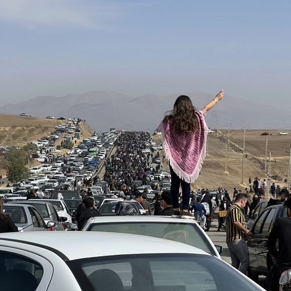 تصویری از یک زن بدون حجاب که برای شرکت در مراسم چهلم مهسا امینی در سقز رفته و روی سقف یک خودرو ایستاده، در رسانههای اجتماعی مورد توجه واقع شده است.