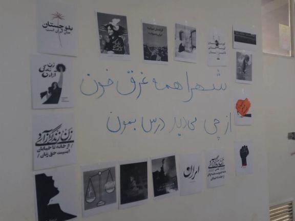 دانشجویان دانشکده شهرسازی دانشگاه تهران به یاد سرکوب خونین اعتراضات مردمی به دست ماموران جمهوری اسلامی روی دیوار شعارنویسی کردند و پلاکارد چسباندند.