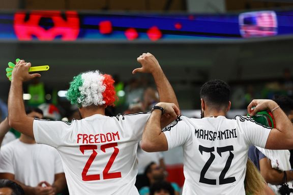 تصویری که خبرگزاری رویترز از استادیوم محل برگزاری بازی تیمهای جمهوری اسلامی و آمریکا در قطر منتشر کرده، نشان میدهد دو تن از هواداران ایرانی با پیراهنهایی که پشت آنها عبارت «آزادی» و نام «مهسا امینی» نوشته شده به ورزشگاه رفتند.