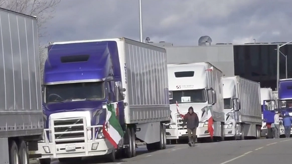 کامیونداران تورنتو ستونی از کامیونها را در همراهی با خیزش انقلابی ایران به حرکت درآوردند
