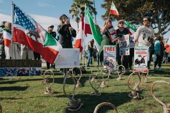 ایرانیان و کنشگران در اورنجکانتی کالیفرنیا در اعتراض به نقض حقوق بشر در ایران تجمع کردند