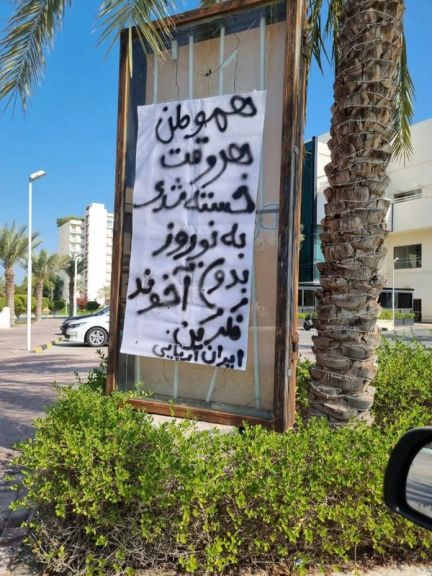 شعارنویسی در کیش: هموطن به نوروز بدون آخوند فکر کن