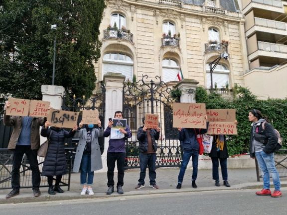 ایرانیان با تحصن مقابل سفارت تهران در پاریس خواستار لغو فوری اعدام محیالدین ابراهیمی شدند
