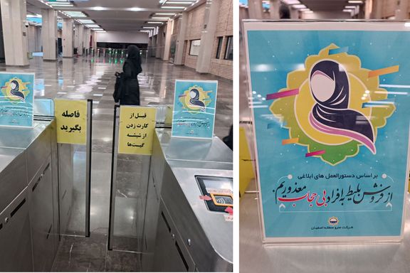 بر اساس گزارشهای به ایران اینترنشنال، تابلوهایی در برخی از ایستگاههای مترو اصفهان قرار گرفته که بر روی آن نوشته شده: «از فروش بلیت به افراد بیحجاب معذوریم.» به گفته یکی از شهروندان، به زنان بدون حجاب اجباری بلیت فروخته نمیشد و در برخی از موارد اجازه سوار شدن نداشتند.