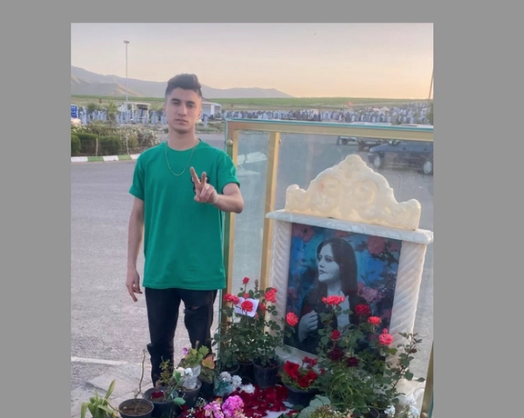 حضور متین حسنی، معترضی که چشمش را از دست داده، بر مزار مهسا امینی