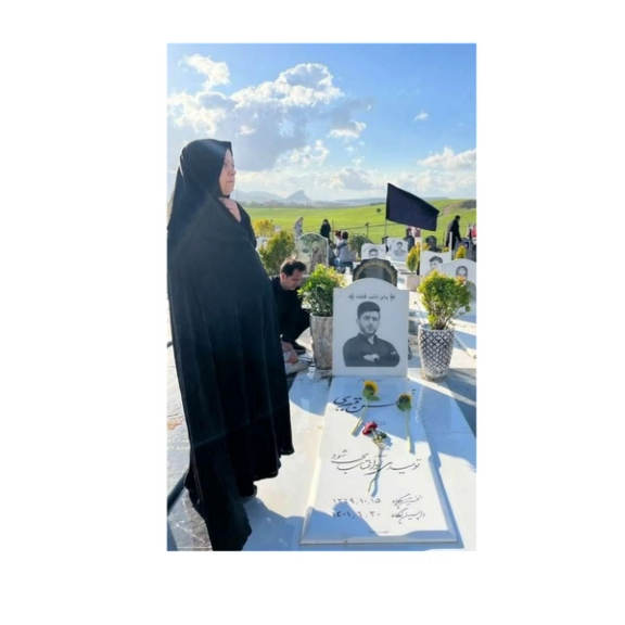 مادر محسن قیصری از کشتهشدگان خیزش انقلابی در ایلام با انتشار تصویری از حضور خود بر مزار پسرش نوشت «به اسم دین! عصای دستم را گرفتید تا به زمینم بزنید اما استوار روی زانوهای شکستهام ایستادهام بر مزار عزیزترینم. حقیقت را نمیتوان زمینگیر کرد. ایستاده ام تا روز دادخواهی.»