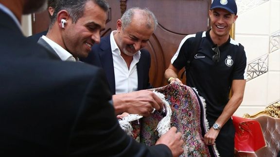 رضا درویش، مدیرعامل باشگاه پرسپولیس در مراسم استقبال از تیم النصر، به کریس رونالدو و سادیو مانه هدایای ویژه ای داد. تصاویری که از این استقبال نامتعارف و عجیب منتشر شده، فرش نفیسی را نشان میدهد که درویش به رونالدو هدیه داده است.