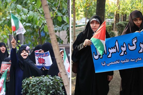 زنان طلبه «مدرسه علمیه تخصصی قبا» تهران در حمایت از غزه، با در دست داشتن پلاکاردهایی با مضمون آرزوی مرگ و نابودی برای اسرائیل و آمریکا، مقابل دفتر سازمان ملل دست به تجمع زدند