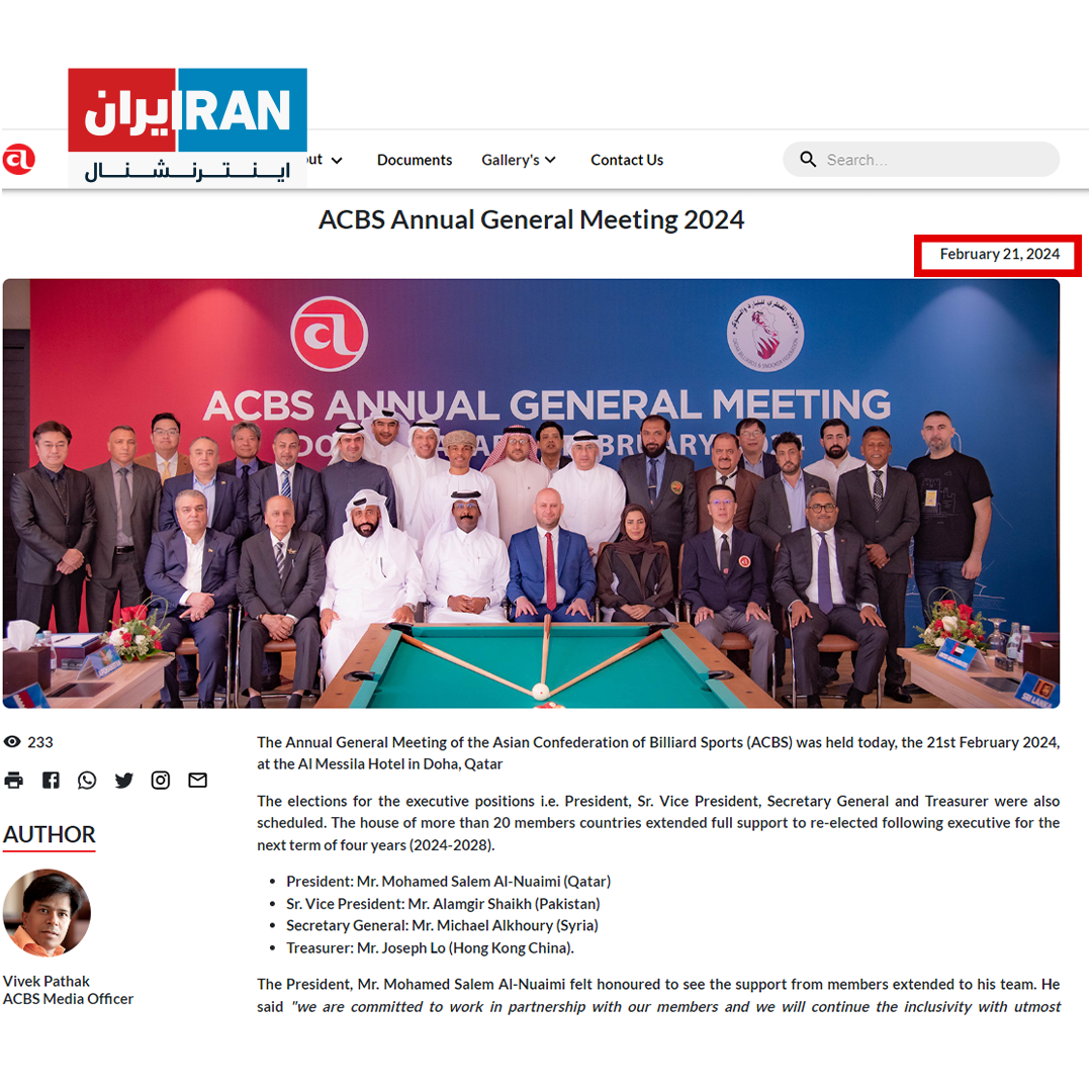 فدراسیون بولینگ و بیلیارد ایران روز گذشته با انتشار خبری کذب روی سایت رسمی فدراسیون، از انتخاب هاشم اسکندری به عنوان نایبرئیس کنفدراسیون ورزشهای بیلیاردی آسیا (ACBS) خبر داد در حالی که در خبر برگزاری مجمع این نهاد روی وبسایت رسمی ACBS، نام او وجود ندارد.