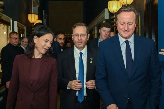 رییسجمهور اسرائیل در ديدار با وزرای خارجه آلمان و بریتانیا خواستار همکاری جهانی علیه تهدید جمهوری اسلامی شد. او افزود تمام جهان باید قاطعانه و سرسختانه در برابر تهدید رژیم ایران که به دنبال تضعیف ثبات کل منطقه است، کار کند.