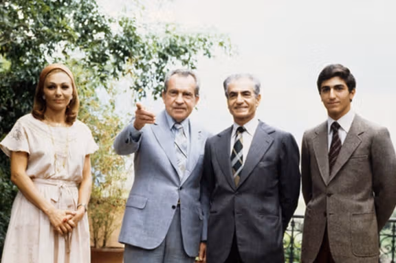 اهدای جایزه «معمار صلح» بنیاد نیکسون به شهبانو فرح و شاهزاده رضا پهلوی