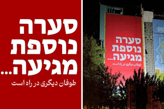 پس از حملات اسرائیل به اهداف نظامی در ایران، تصاویر منتشر شده در رسانههای جمهوری اسلامی نشان میدهد که روز شنبه دیوارنگاره جدیدی در میدان فلسطین در تهران نصب شده است. روی این دیوارنگاره قرمزرنگ به زبان عبری نوشته شده: «طوفان دیگری در راه است.»
