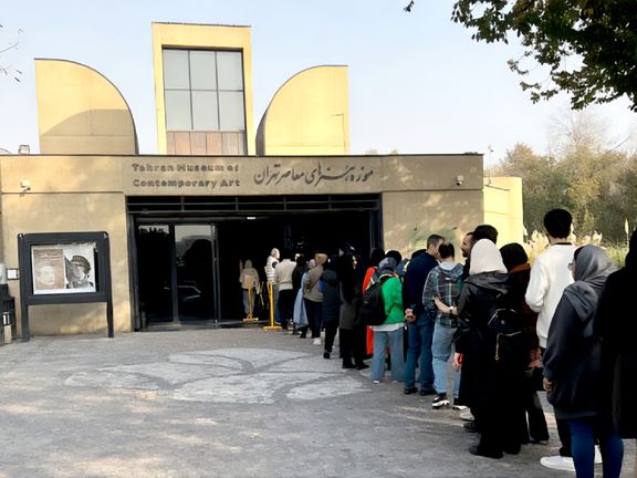تشکیل صف طولانی برای تماشای آثار هنری در نمایشگاهی در موزه هنرهای معاصر