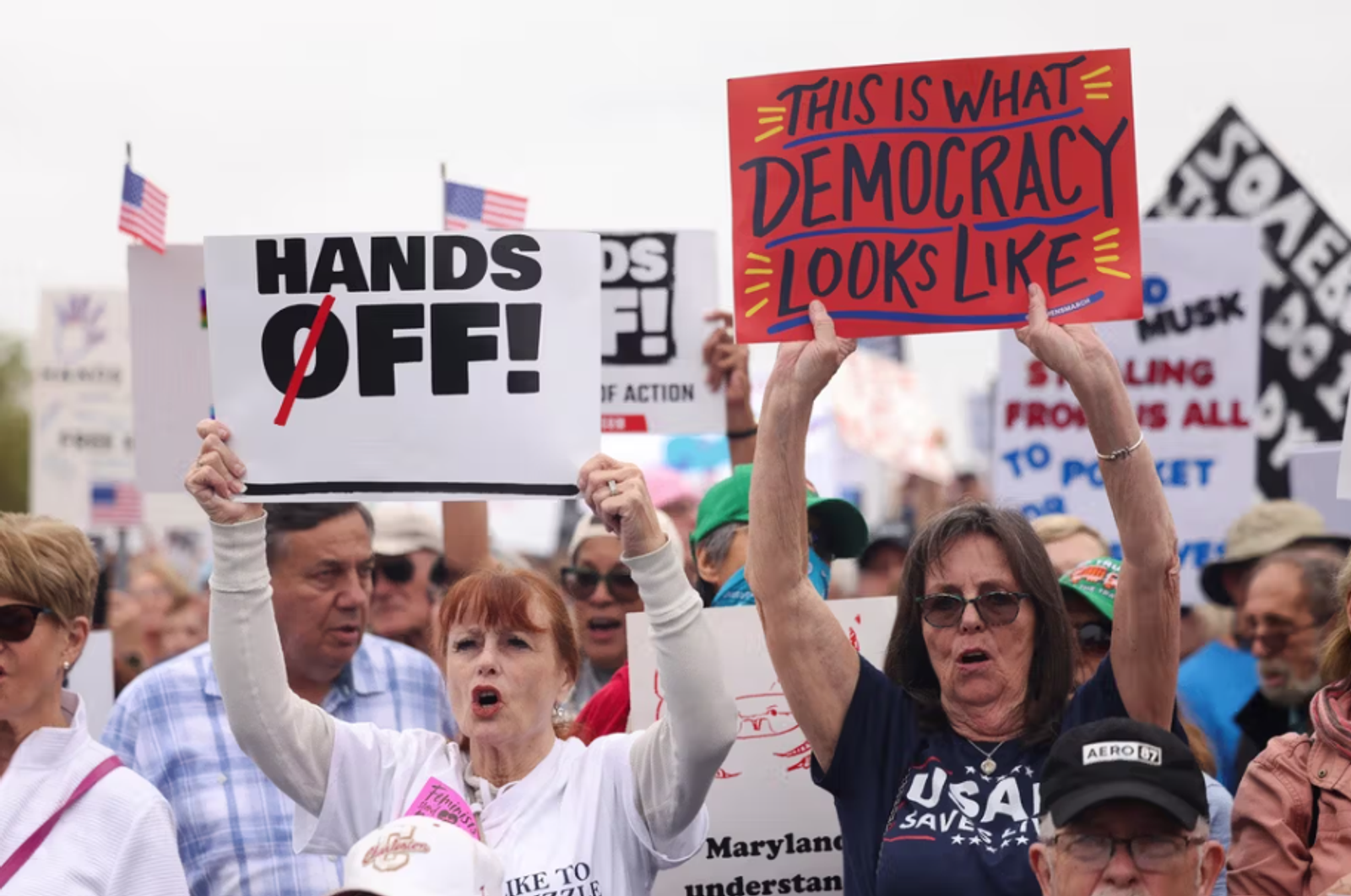 هزاران معترض روز شنبه در واشینگتن و دیگر شهرهای آمریکا گرد هم آمدند تا مخالفت خود را با سیاستهای دونالد ترامپ، رییسجمهور ایالات متحده، در زمینه اخراج مهاجران، اخراج کارمندان دولتی و جنگهای غزه و اوکراین ابراز کنند.