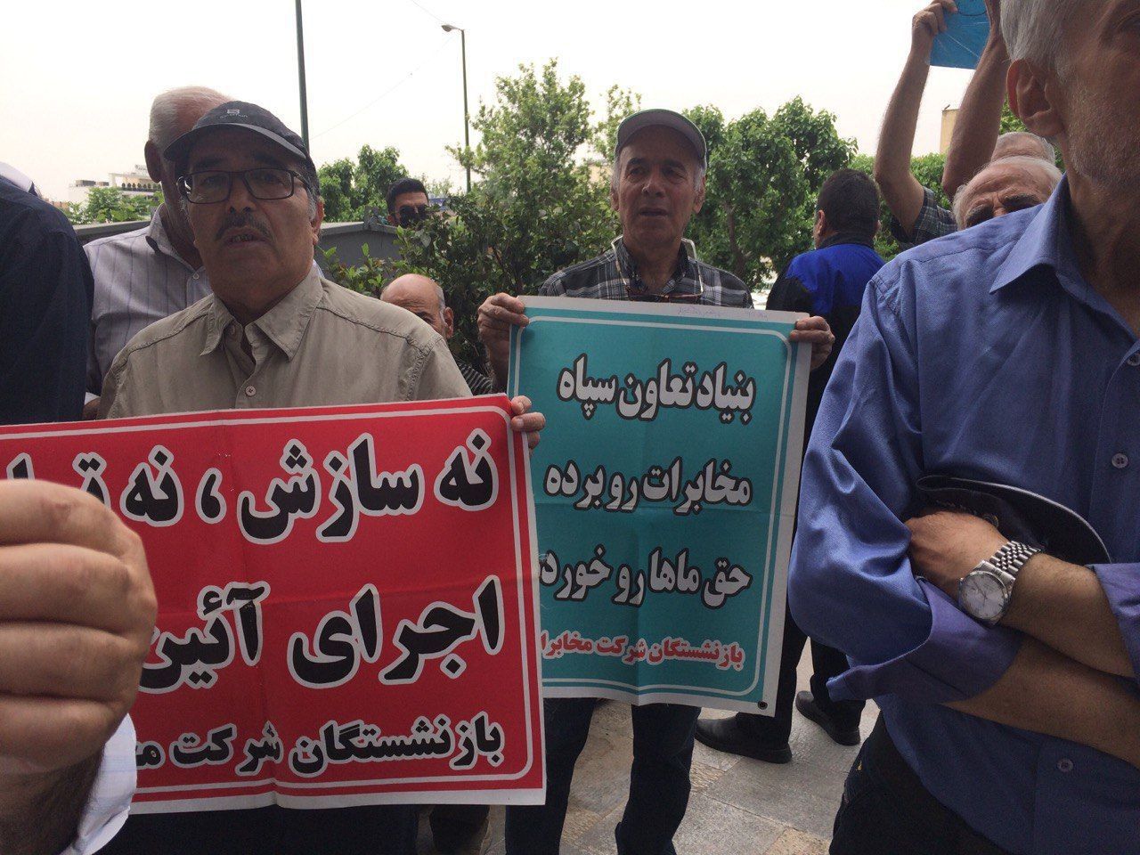 با ادامه بحران اقتصادی و ناتوانی حکومت در رسیدگی به مطالبات اقشار مختلف جامعه، بازنشستگان شرکت مخابرات در بیش از ۱۴ شهر کشور تجمع اعتراضی برگزار کردند. آنها شعارهایی علیه «ستاد اجرایی فرمان امام» و «بنیاد تعاون سپاه پاسداران» به عنوان سهامداران عمده شرکت مخابرات ایران سردادند.