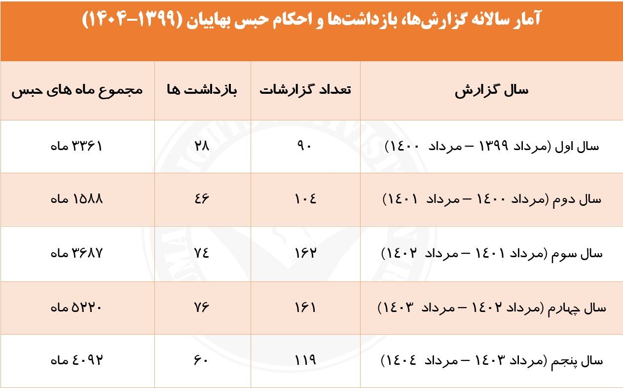 سایت حقوقبشری هرانا در گزارشی آماری روند برخورد نهادهای امنیتی و قضایی جمهوری اسلامی با جامعه بهائی در ایران، طی پنج سال گذشته را بررسی کرد و نوشت شواهد نشان میدهد که برخوردها علیه بهائیان ایران نه به شکل مقطعی، بلکه به صورت سیاستی سازمانیافته و مستمر دنبال شده است.