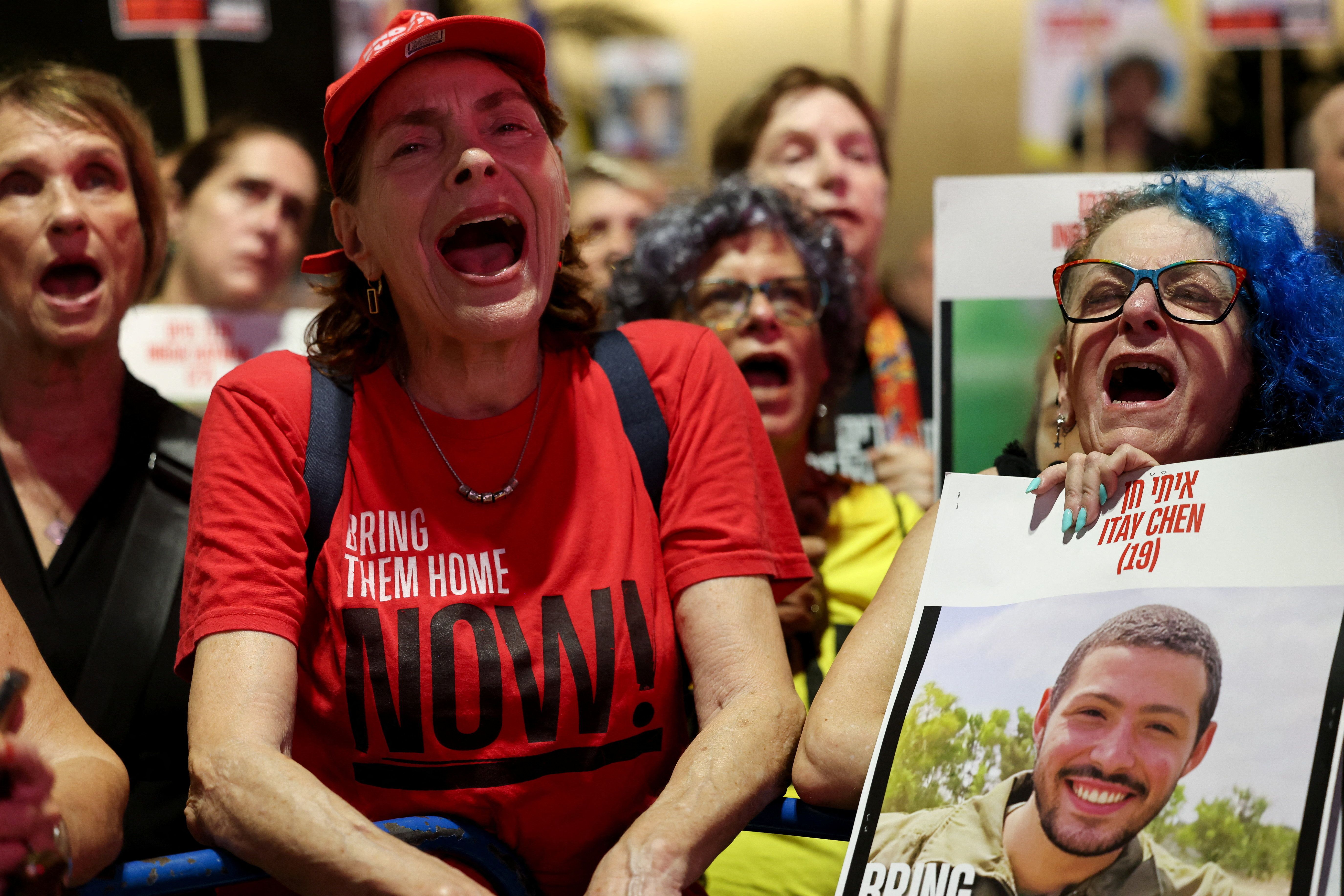 دهها هزار اسرائیلی هر هفته تظاهراتی برگزار کردهاند و خواستار پایان جنگ برای آزادی گروگانها شدهاند. صدها نفر جمعه نیز به مناسبت ۷۰۰ روز اسارت گروگانها در میدانی در تلآویو گرد آمدند.