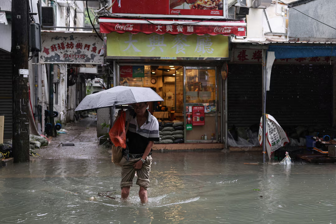 امواج بلند طوفان راگاسا به سواحل شرقی و جنوبی هنگکنگ رسید و آب دریا وارد خیابانها و مناطق مسکونی شد.