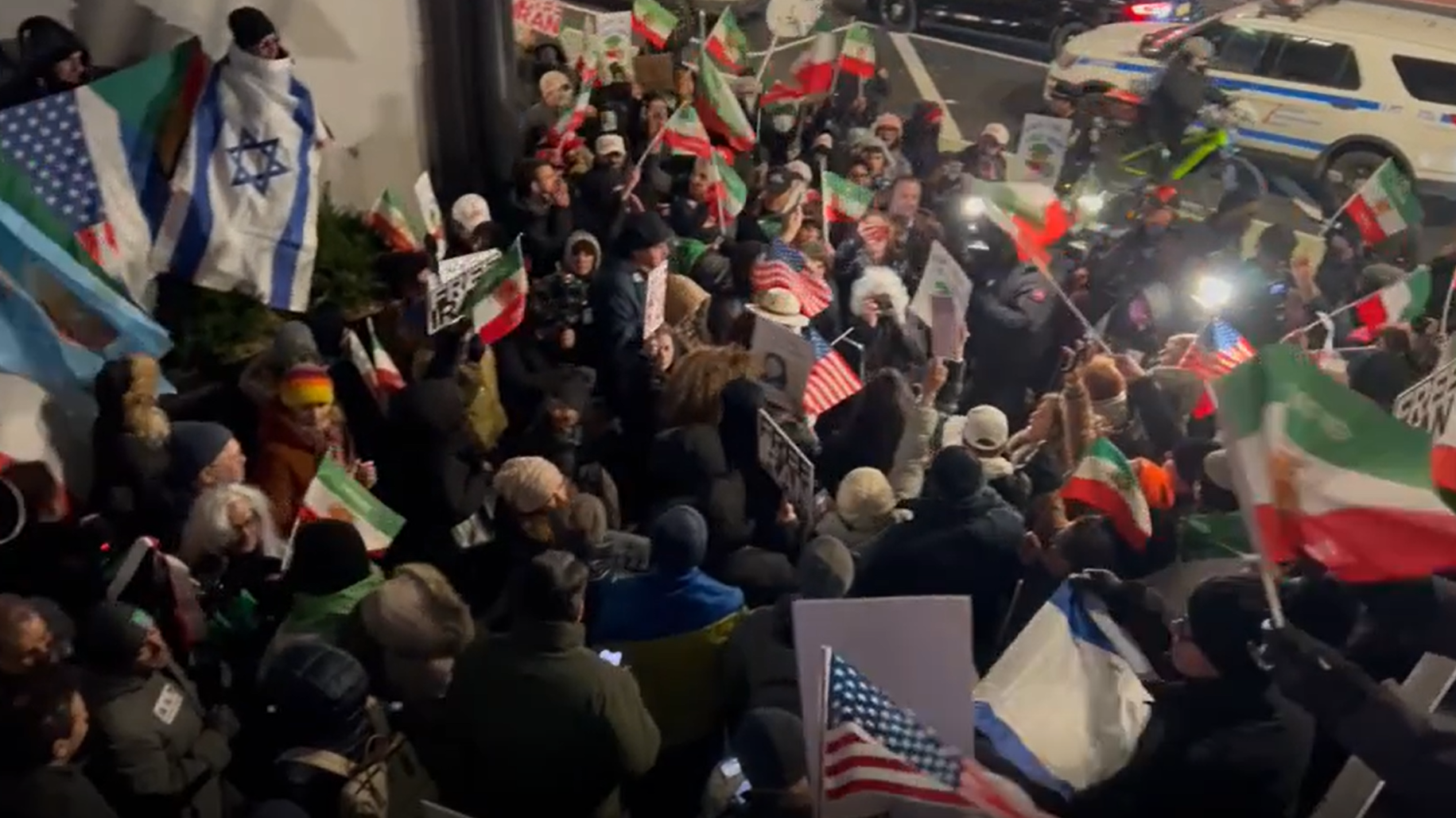 معترضان در حمایت از مردم ایران مقابل دفتر نمایندگی جمهوری اسلامی در سازمان ملل تجمع کردند
