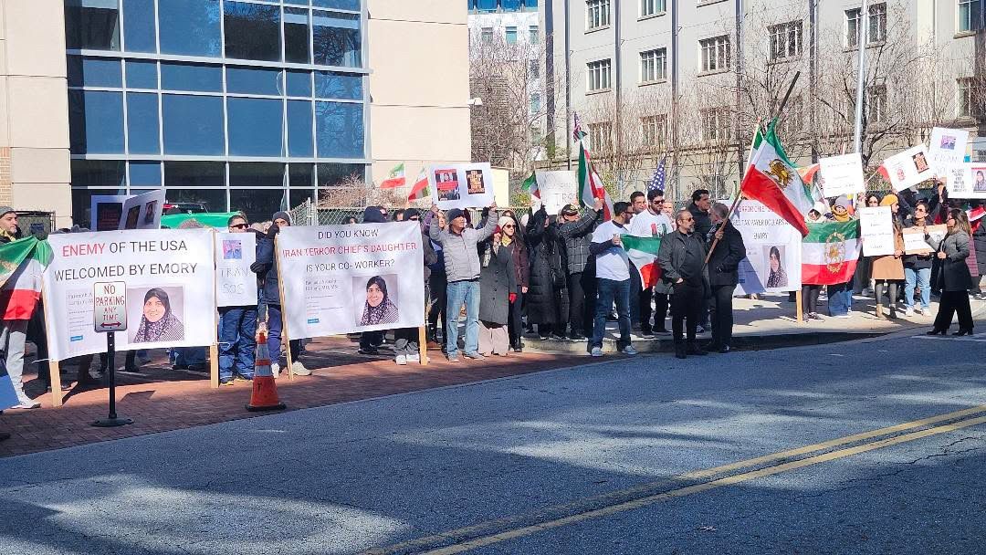 گروهی از ایرانیان ساکن آتلانتا در ایالت جورجیا آمریکا در اعتراض به اشتغال فاطمه اردشیر لاریجانی، دختر علی لاریجانی، در موسسه سرطان وینشیپ دانشگاه اموری، مقابل این دانشگاه تجمع کردند.