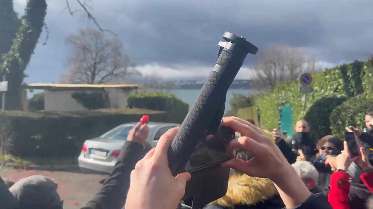 بر اساس ویدیوهای رسیده به ایران اینترنشنال، گروهی از معترضان هنگام خروج خودروهای هیات جمهوری اسلامی از محل مذاکرات در سفارت عمان در ژنو، به سوی این خودروها گوجه پرتاب کردند. معترضان همزمان شعار دادند: «مرگ بر تروریست».