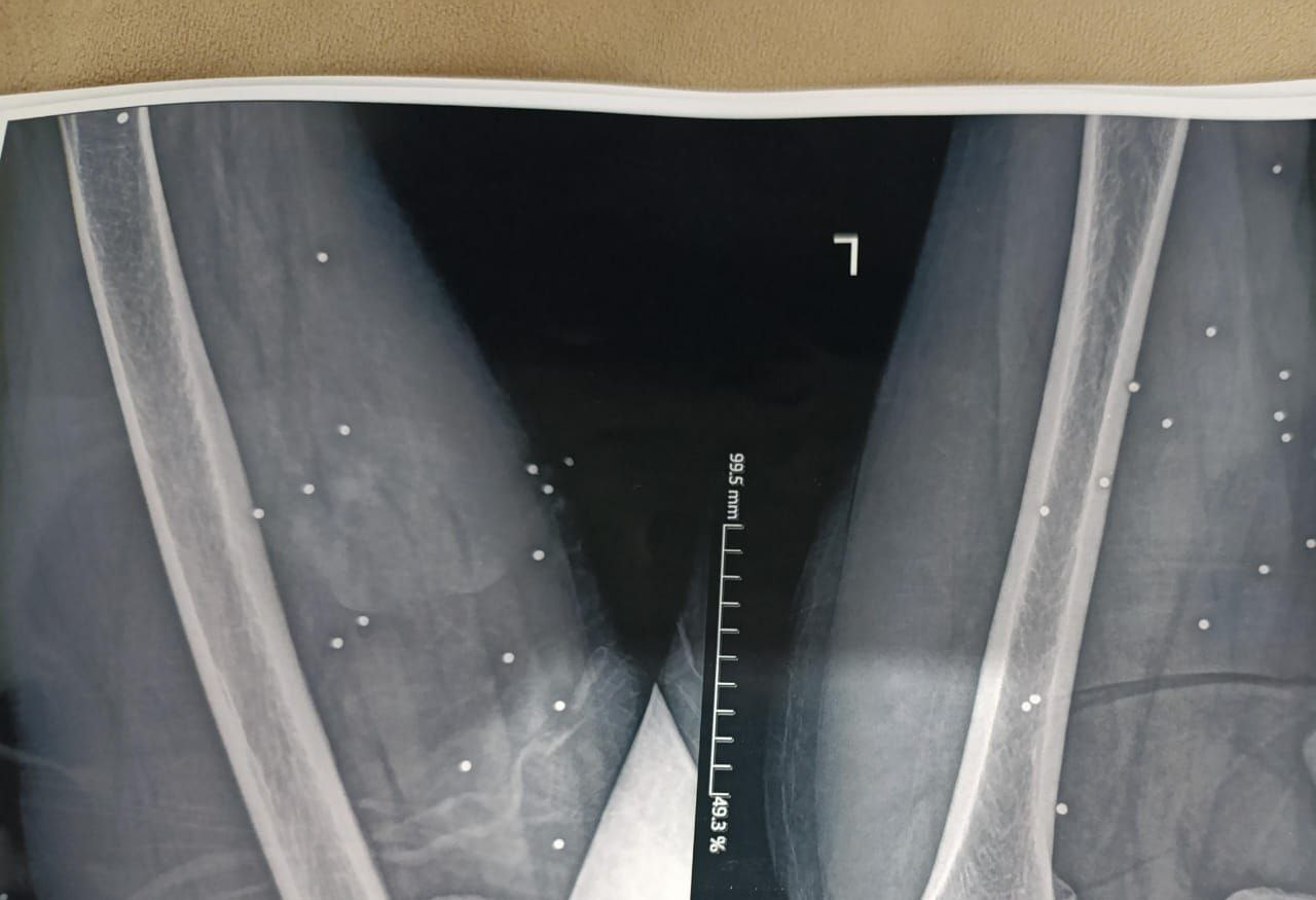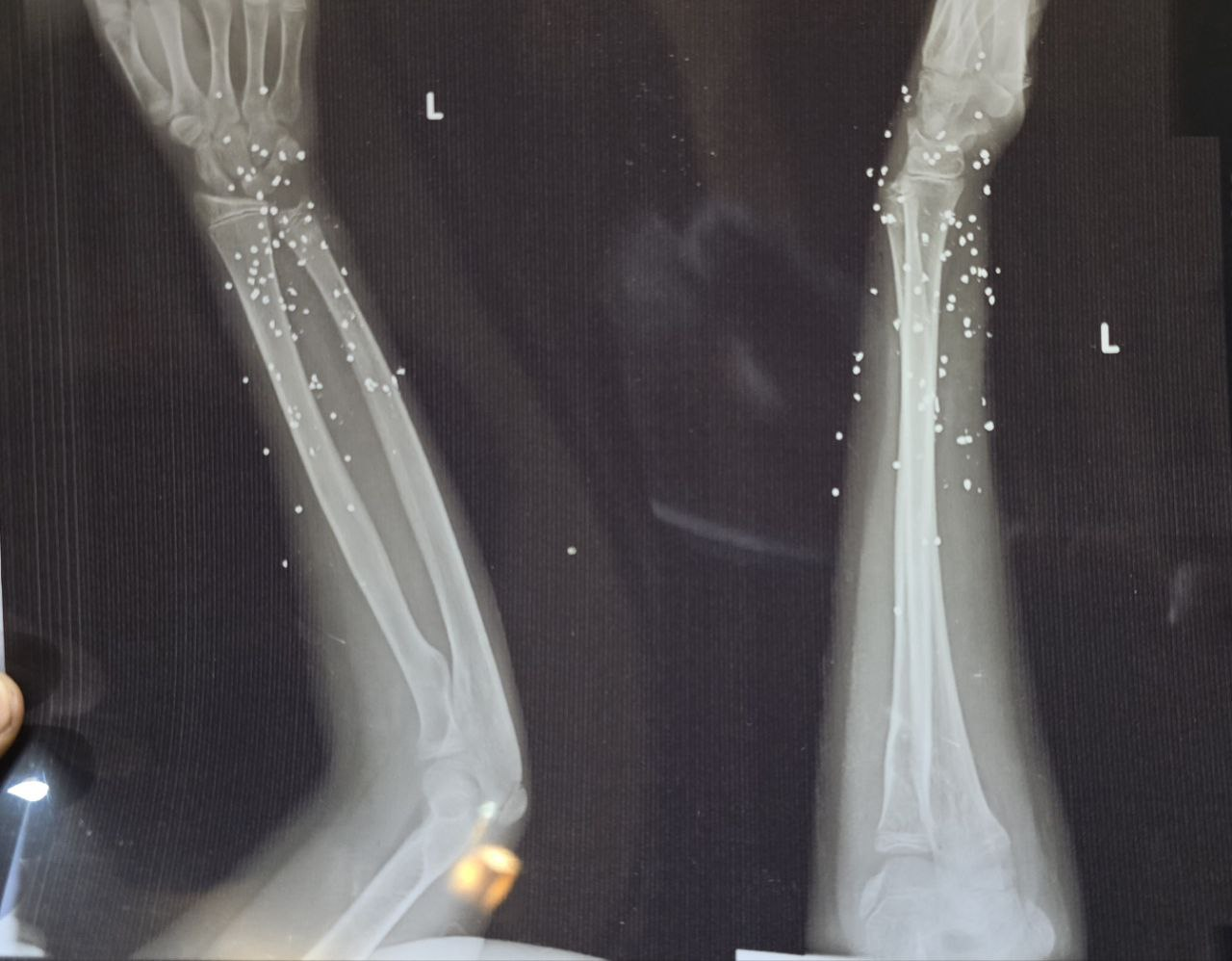 در یکی از تصاویر، نزدیک به ۲۰۰ ساچمه در ران و لگن یک زن میانسال دیده شده است.