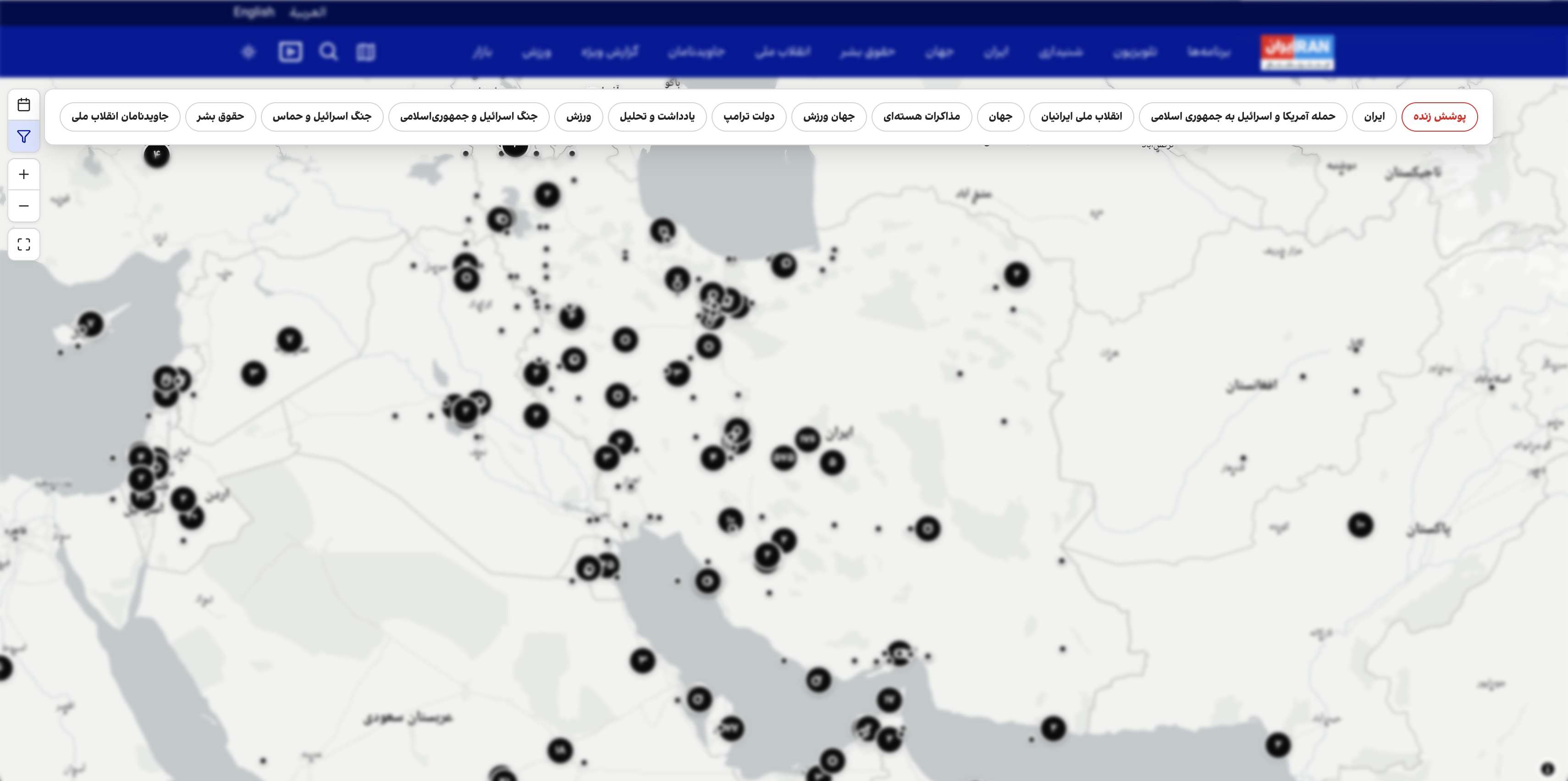 برای نمونه، مخاطبان میتوانند فقط خبرهای مربوط به بخشهایی مانند پوشش زنده، حمله آمریکا و اسرائیل به جمهوری اسلامی، انقلاب ملی ایرانیان، جهان و یادداشت و تحلیل را روی نقشه مشاهده کنند.
