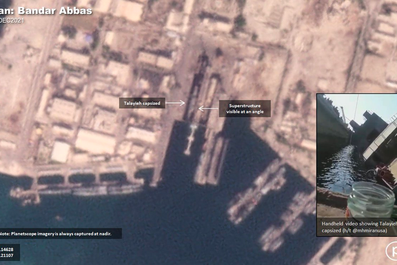 انتشار صور لـ"غرق" سفينة حربية تحت الإنشاء تابعة للجيش الإيراني في بندرعباس