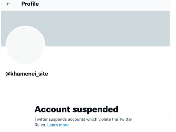 موقع "تويتر" يغلق أحد حسابات المرشد الإيراني علي خامنئي. وذلك بعد نشر رسوم متحركة تحاكي اغتيال دونالد ترامب انتقاما لمقتل القائد السابق لفيلق القدس التابع للحرس الثوري الإيراني.