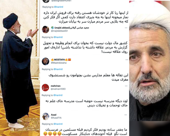 وكتب "أمير" قائلا: "لا يمكن تخيل تكلفة هذه الصلاة، فقط بوتين نفسه يعرف كم هي التكلفة التي يجب أن ندفعها نحن من أجلها.. هذا الأحمق (رئيسي) لا يفهم شيئا على الاطلاق"، وقال "صاحب حساب "آزاد": "كم نحن بسطاء عندما كنا نعتقد أن قبلة المسلمين هي في المملكة العربية السعودية جاهلين أن قبلة الملالي المجرمين هي في موسكو".