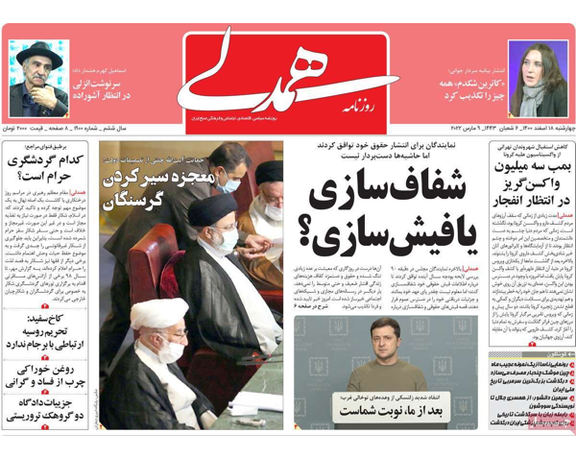 في شأن آخر علقت بعض الصحف الصادرة اليوم الأربعاء 9 مارس (آذار)، على تصريحات الرئيس الإيراني، إبراهيم رئيسي، الذي أكد استمرار طهران في موقفها من المفاوضات النووية، وعدم تراجعها عما أسماه "الخطوط الحمراء" لإيران.