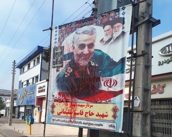 قام مواطنون في مدينة "نكا" بمحافظة مازندران شمالي إيران برش لون الدم على صورة قاسم سليماني، قائد فيلق القدس المقتول. وعشية ذكرى مقتله، أضرم مواطنون في بعض المدن الإيرانية النار بصور سليماني أو رشوها باللون الأحمر تعبيرا عن جرائمه.