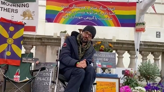 قال الناشط الإيراني وحيد بهشتي في اليوم الـ64 لإضرابه عن الطعام، أمام وزارة الخارجية البريطانية: إن مظاهرة 29 أبريل / نيسان، للإيرانيين في لندن سيكون يوما عظيما لإنجاح جهود شعبنا. سأستمر في الإضراب عن الطعام حتى يتم إدراج الحرس الثوري الإيراني في قائمة الإرهاب.