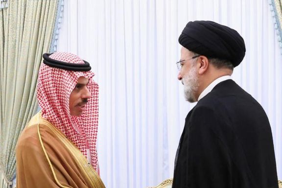 وزير الخارجية السعودي، فيصل بن فرحان، يلتقي الرئيس الإيراني إبراهيم رئيسي، في المقر الرئاسي بالعاصمة طهران.