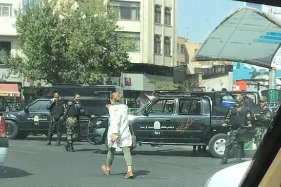 سيدة إيرانية تتحدى عناصر قوات الأمن وتمر أمامهم دون حجاب إجباري
