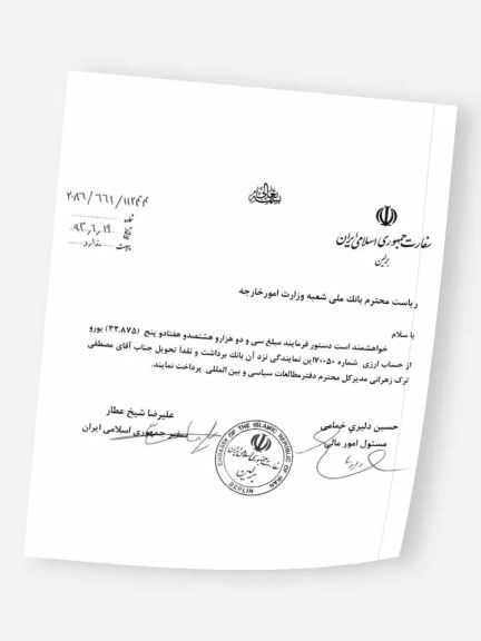 وتساءل الاثنان أيضا في هذه الرسالة: "هل كنتم على علم بعلاقة طباطبائي مع النظام الإيراني، سواء بشكل رسمي أو غير رسمي؟" هل كنتم تعلمون بعلاقات طباطبائي مع النظام الإيراني قبل تعيينها في وزارة الدفاع؟
