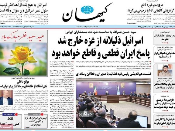 الرد أو عدم الرد على إسرائيل هو الموضوع الرئيسي الذي لا يزال يحتل مساحة واسعة في تغطية الصحف الإيرانية الصادرة اليوم الثلاثاء 9 أبريل (نيسان).