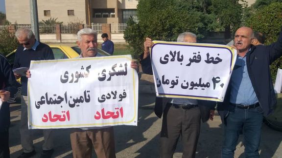 وفي أصفهان، رفع متقاعدو الصلب شعارات مثل: "صرخة، صرخة ضد كل هذا الظلم"، و"الراتب العادل.. حقنا المشروع".