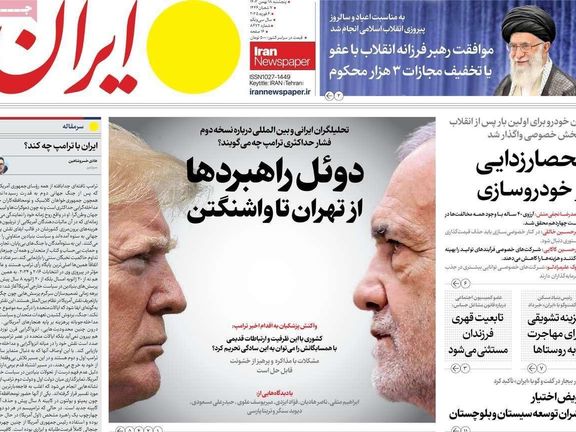 من جانبه قال الكاتب والدبلوماسي الإيراني السابق عبد الرضا فرجي راد في مقال له بالصحيفة أيضا، إن ترامب ترك الباب مفتوحا للتفاوض والتفاهم مع إيران لكنه رفع بجانبه عصا العقوبات، معتقدا أن العقوبات ضد طهران ستكون صعبة وأنه بحاجة لإظهار القوة وتخويف طهران من مغبة عدم التوصل لاتفاق مع إدارته.